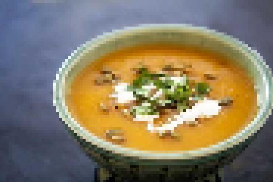 Ajouter le bouillon dans la casserole, porter à ébullition, puis réduire le feu et laisser mijoter pendant 10-15 minutes jusqu'à ce que le potiron soit bien tendre.